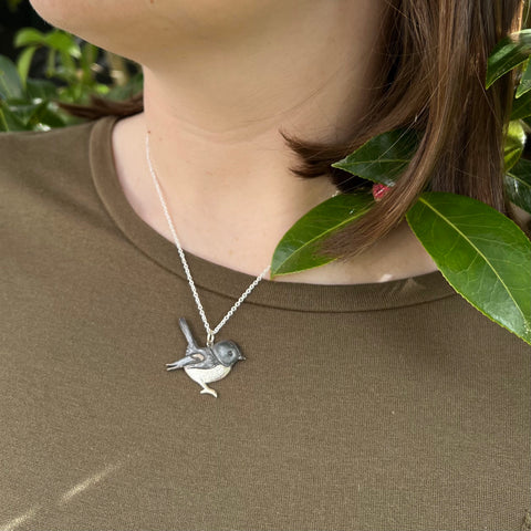Native New Zealand birds are without doubt Tania mallow’s signature theme. Her personal connection and love of our feathered treasures is evident in the intimate rendering of their shapes and characters. Like all of Tania’s pieces these wee characters are created with comfort and quality at the forefront. Materials are not spared on her pendants and wearing them truly feels like wearing a beautiful medallion. The etched features of each bird are hand carved by Tania herself in her very special style.