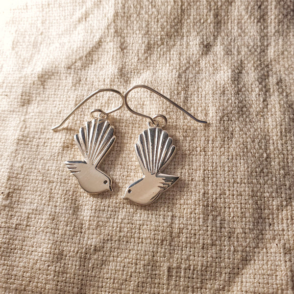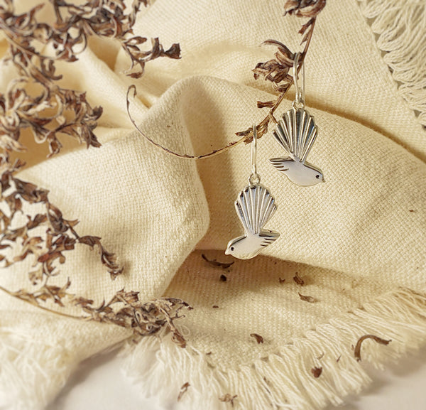 Pīwakawaka - Fantail Earrings, Sterling Silver