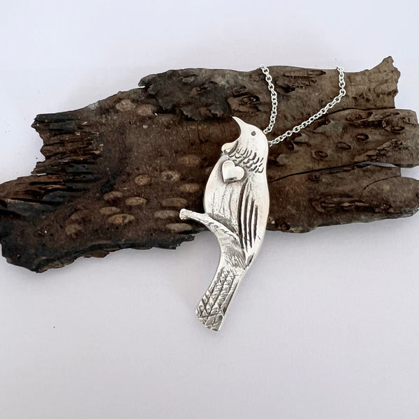 Native New Zealand birds are without doubt Tania mallow’s signature theme. Her personal connection and love of our feathered treasures is evident in the intimate rendering of their shapes and characters. Like all of Tania’s pieces these wee characters are created with comfort and quality at the forefront. Materials are not spared on her pendants and wearing them truly feels like wearing a beautiful medallion. The etched features of each bird are hand carved by Tania herself in her very special style.