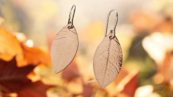 Petite Leaf Earrings, Imprinted Copper