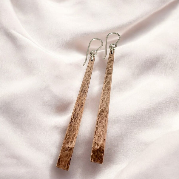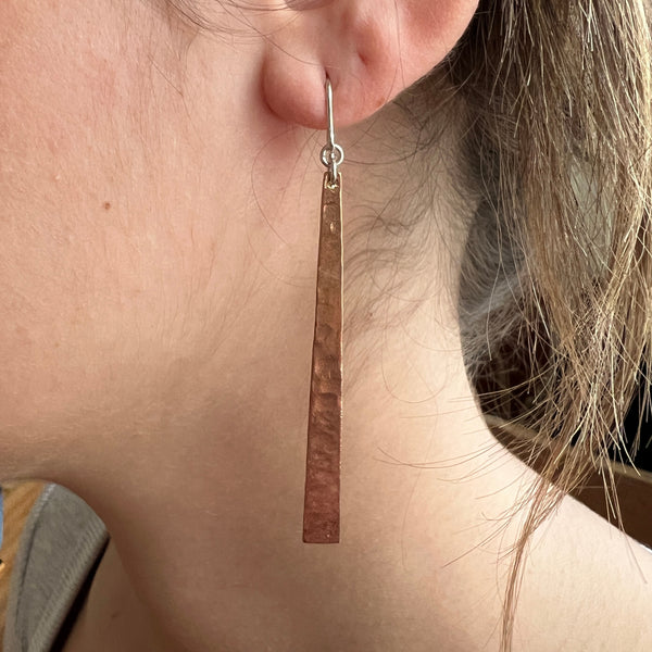 Bar Earrings, Embossed Copper