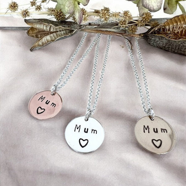Mum Disc Necklace, stamped copper