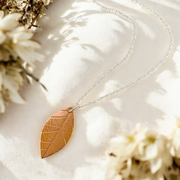 Leaf Necklace, Imprinted Copper