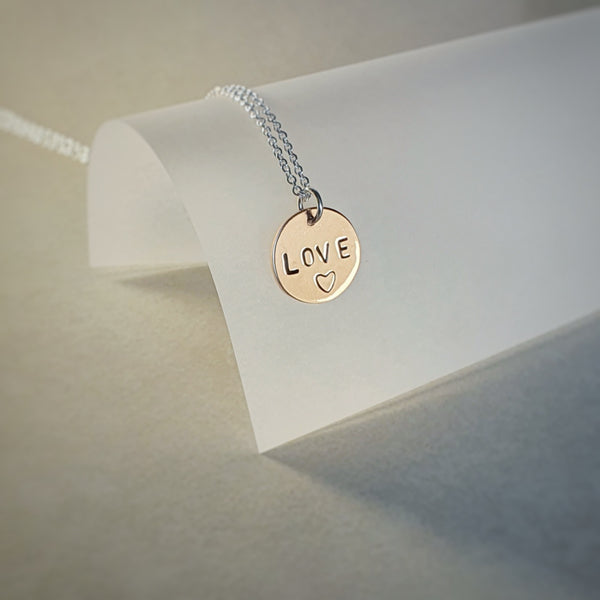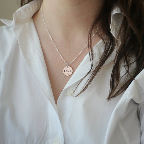 Love Disc Necklace, Stamped Copper
