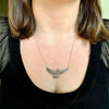 The bird range has a beautiful weighty feel. Like many of Tania Mallow's other pieces they are created with comfort and quality at the forefront. Materials are not spared on her necklaces and wearing them feels amazing. This necklace is enhanced by a skillful oxidization technique which brings the carved lines to life.