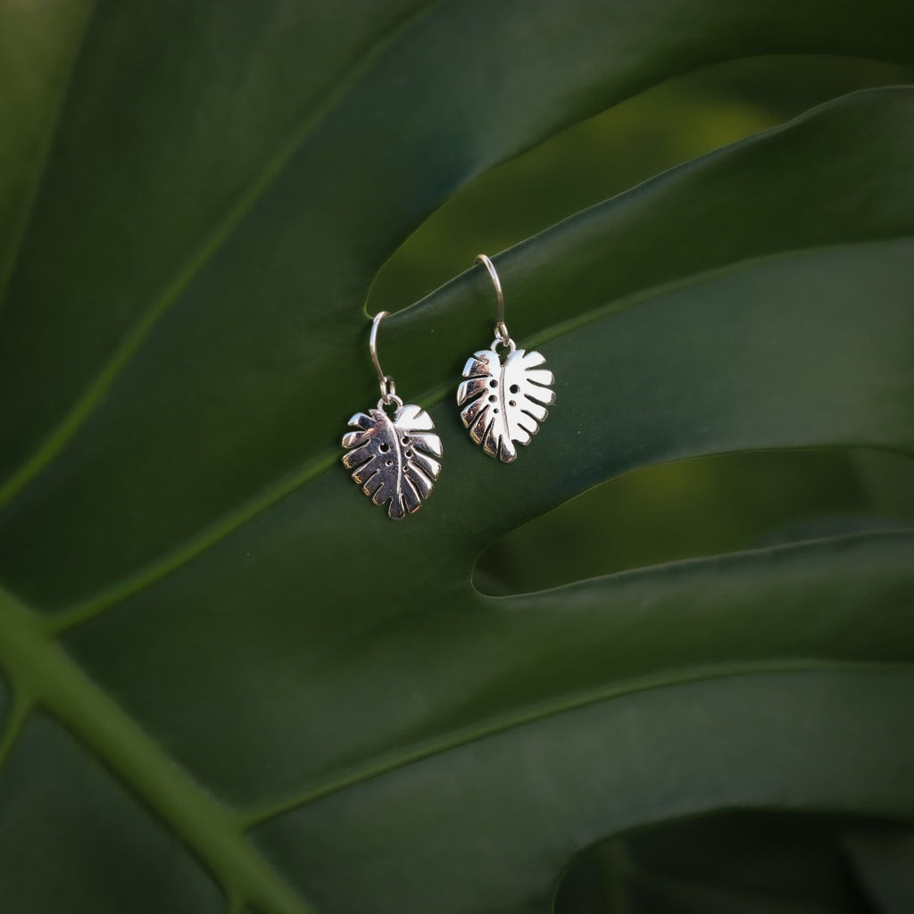 Bold Monstera leaf earrings, skillfully cast in sterling silver from an original Tania Mallow, finished with sterling silver hooks.